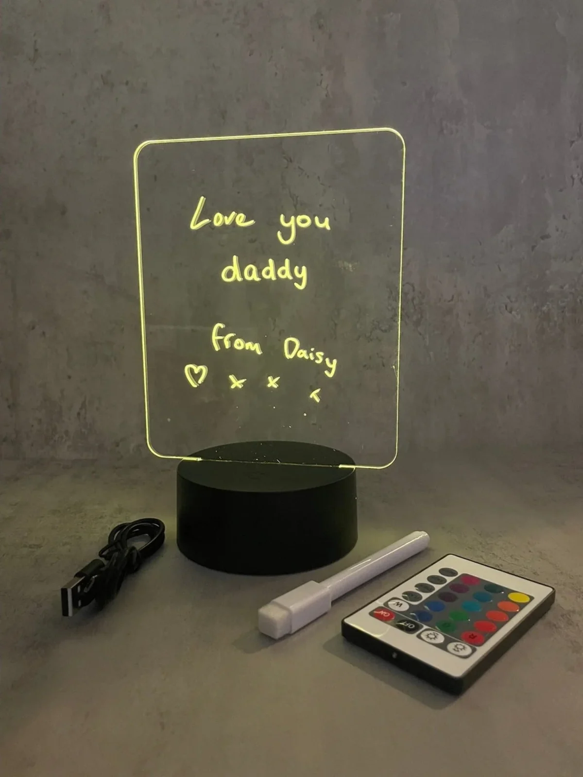 This board lamp is with a free pen as a gift, you can leave a message with this pen. The messages are easily removed by the eraser on the pen top.